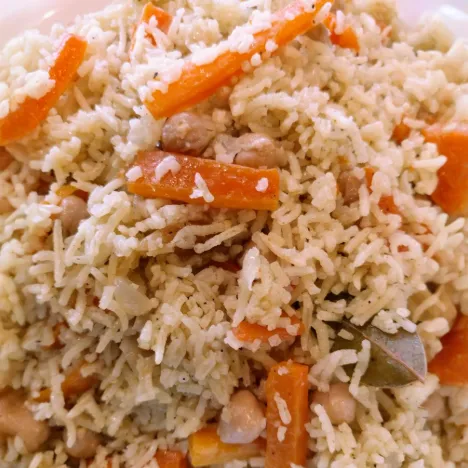 אורז עם בצל מקלות גזר וגרגירי חומוס