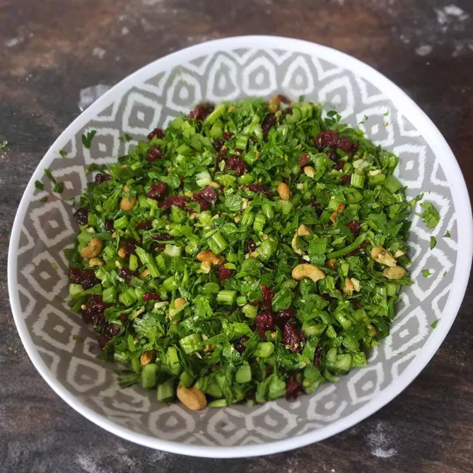 שלל עשבי תיבול קצוצים עם שקדים וחמוציות