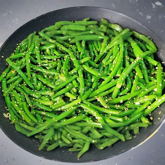 כמות של שעועית ירוקה מוקפצת